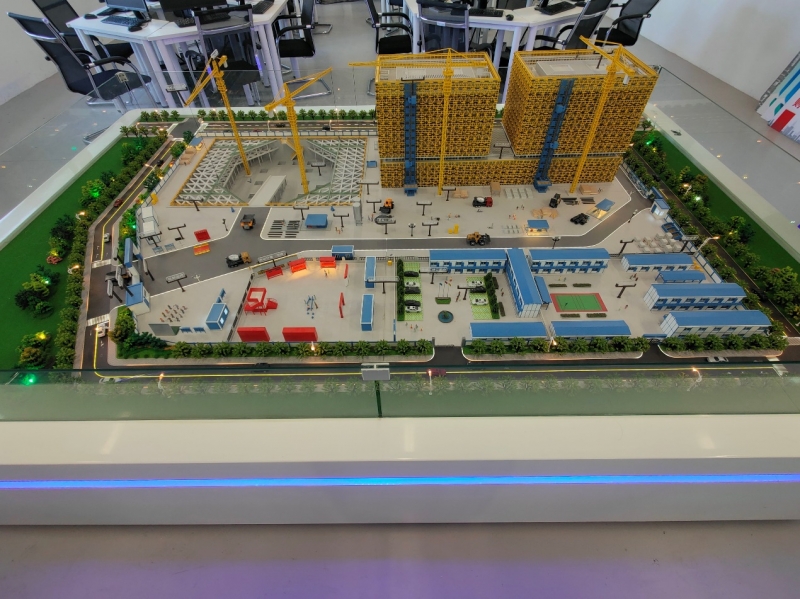 (一)认知教学:通过智慧工地沙盘模型和数字沙盘,展示土方开挖、主体施工和装修施工不同阶段的现场布置和主要构件的构造,通过真实场景实物缩尺和隐蔽工程剖切展示,链接教学知识点展示,让员工在真实场景中直观系统学习。